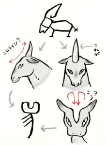 と思うのですが……。あるいは横から見た顔で、角から鼻筋・口元までのラインを表しているのでしょうか?