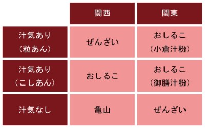 それに対して関東では、汁気があれば「おしるこ」とひとくくりにします。