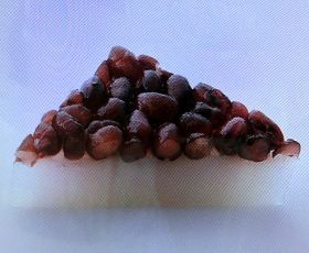 小豆は色や形も愛らしく、色鮮やかな皮をむくと中の豆は淡い色、というコントラストも魅力的です。羊羹で有名な虎屋の代表的商品「夜の梅」の銘は、羊羹の切り口の小豆が夜の闇にほの白く咲く梅を表すことから付けられたそうです。
